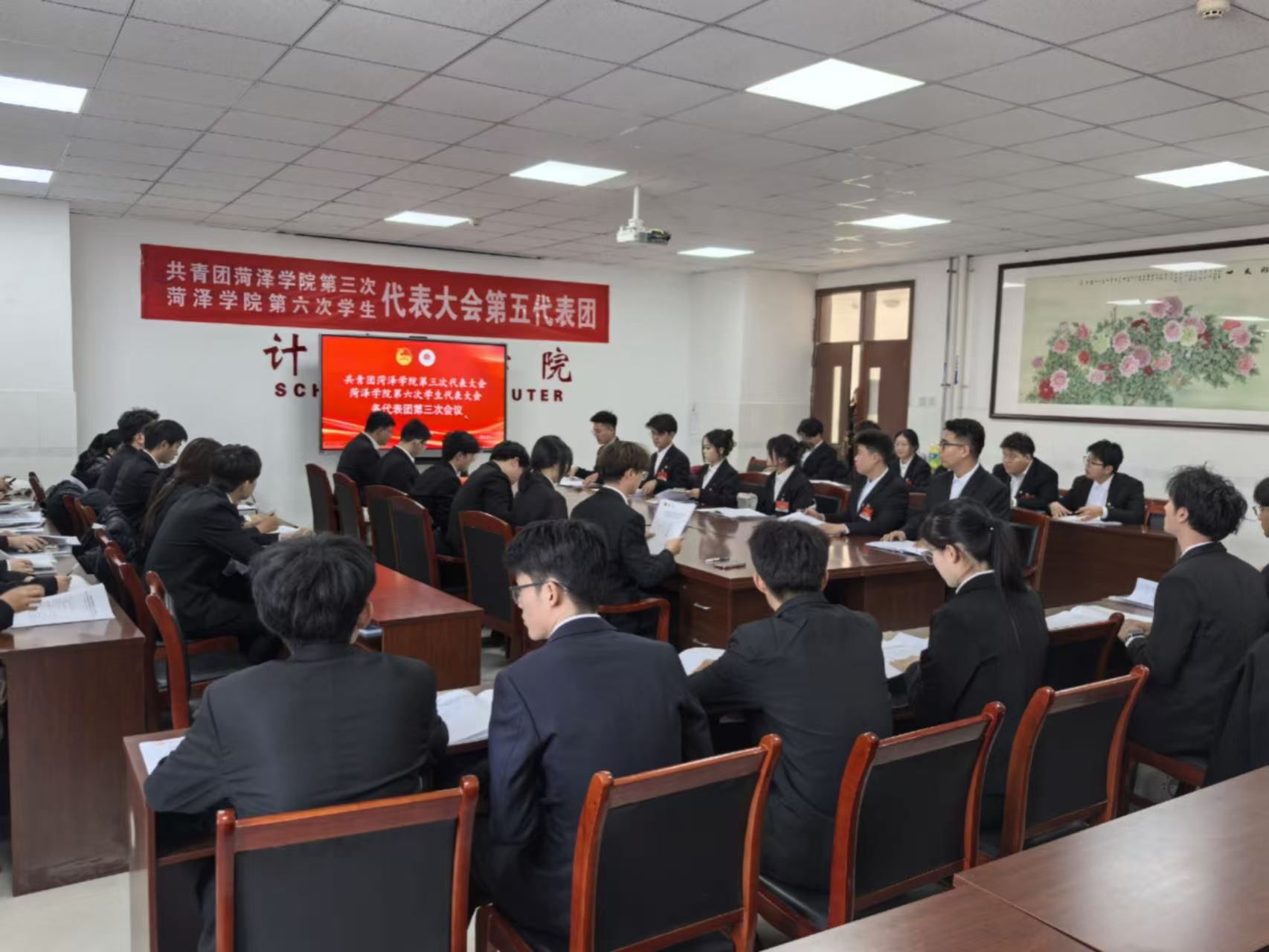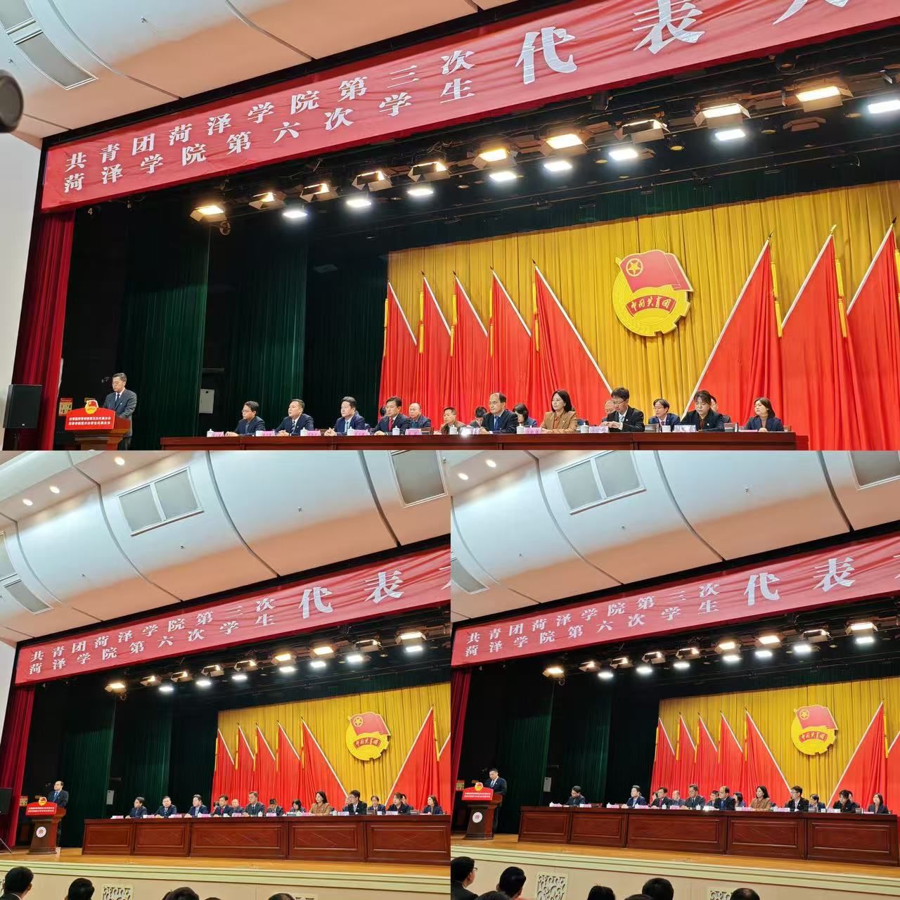 高举中国特色社会主义伟大旗帜,坚持以习近平新时代中国特色社会主义思想为指导,全面深入学习贯彻党的二十大和二十届二中、三中全会精神,深入贯彻落实习近平总书记关于教育工作、青年工作的重要论述和重要指示精神,贯彻落实团的十九大、山东省第十五次团代会和学校第四次党代会各项目标任务,切实履行引领凝聚青年、组织动员青年、联系服务青年职责使命,着力深化改革攻坚和全面从严治团,不断提升共青团 “三力一度” 水平,踔厉奋发、勇毅前行,团结带领广大团员青年为全面建设特色鲜明的高水平应用型大学贡献磅礴青春力量,11 月 22 日—11 月 23 日,共青团bv1946伟德第三次代表大会、bv1946伟德第六次学生代表大会于艺术演播中心隆重召开。