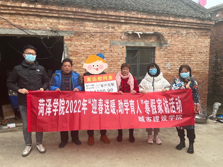 为做好巩固拓展教育脱贫攻坚成果同乡村振兴有效衔接,帮助脱贫享受政策、防止返贫监测帮扶对象等家庭学生温暖安全过冬,深入了解脱贫享受政策家庭学生的情况,推动家校合作共建育人长效机制建设,促进学生健康成长和全面发展。城市建设学院资助领导小组根据疫情防控要求,制定家访方案,决定采用线上和线下相结合的家访方式,1 月 12日,伟德国际victor·1946源自团委书记陈伟带队,辅导员汤洪震、李伟一行 3 人前往菏泽东明县刘楼镇,有针对性的对脱贫享受政策学生进行入户家访, 送去慰问金、御寒羽绒服、米面油等生活必需品和美好祝福。13 日由刘夏菡副书记带领班主任周铭、朱明听、邵珠海对潍坊、湖北等地区同学进行了线上视频家访。