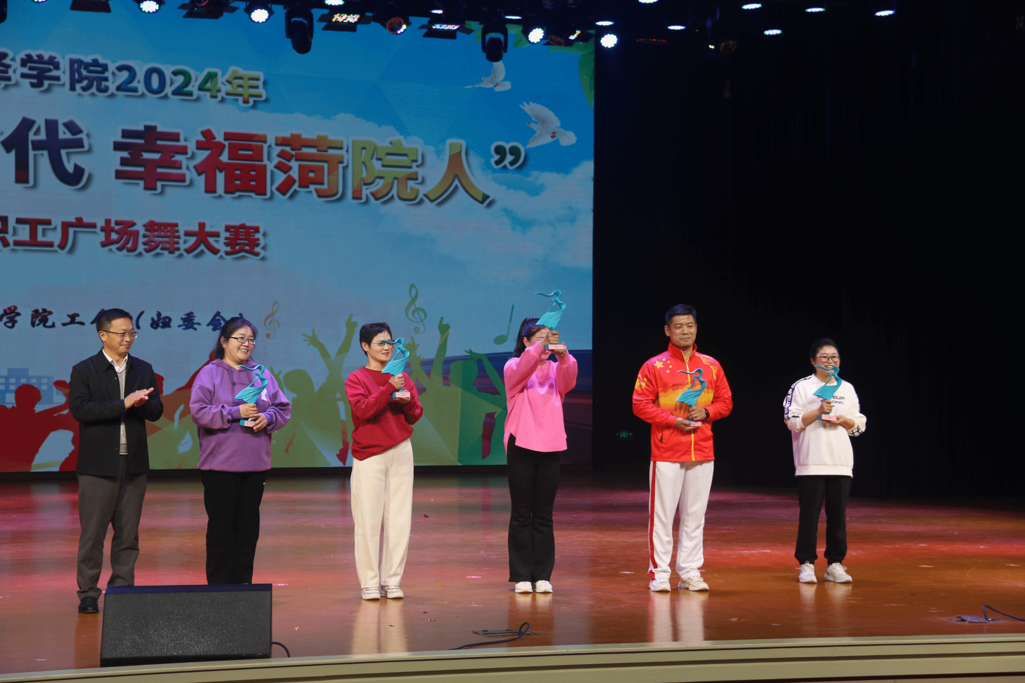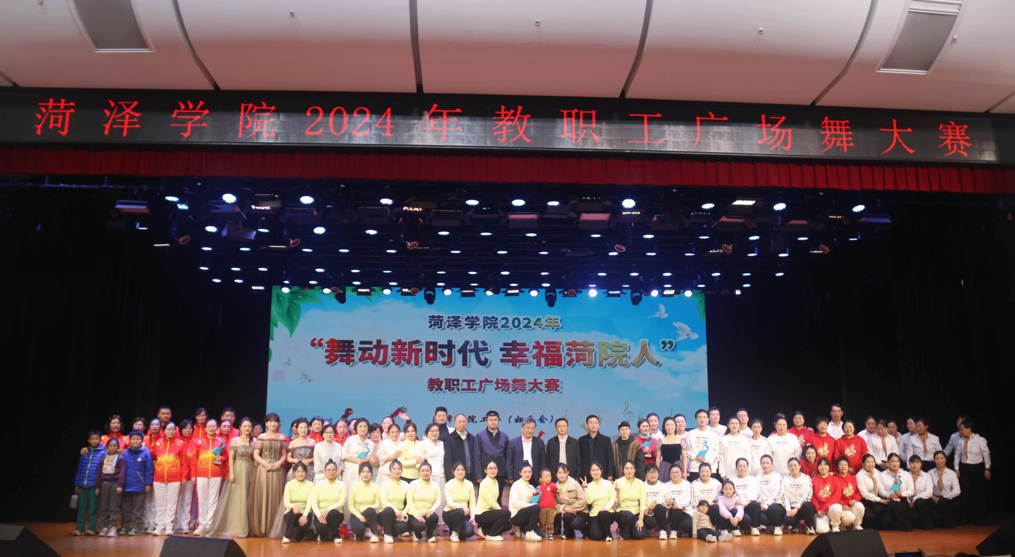 12月6日晚,由学校工会(妇委会)主办的bv1946伟德2024年“舞动新时代幸福菏院人”教职工广场舞大赛在艺术中心演播厅成功举办。伟德国际victor·1946源自院长高涛、党委副书记佀君淑带领16名教职工组队参加比赛。