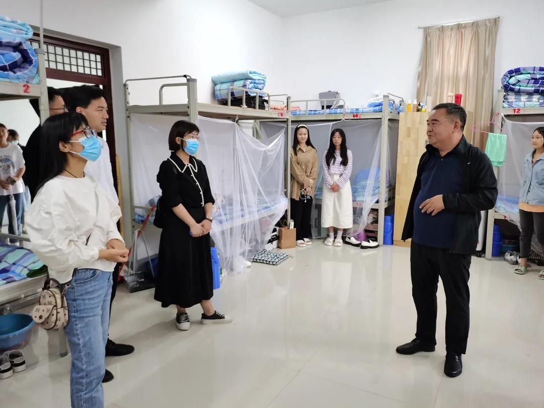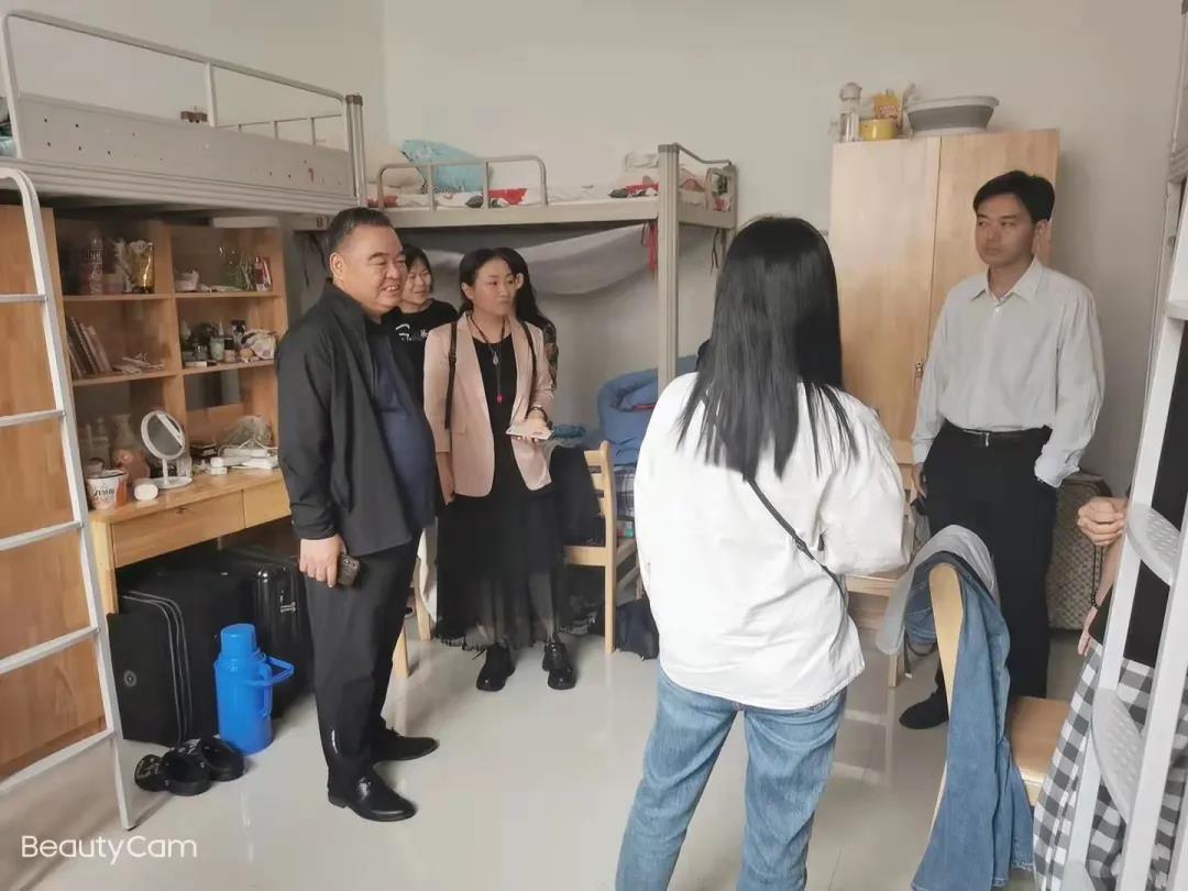 走访期间中,郑作华亲切的与新生们进行交谈,询问新生是否适应大学的生活,生活上是否有困难及舍友的相处情况。领导老师对新生宿舍生活设施等做了排查,了解学生日常具体的所需是否完善及亟待解决问题的落实。鼓励新生尽快熟悉环境,注意宿舍用电安全,严格配合学校疫情防控管理。老师们叮嘱学生们注意人身安全,贵重物品存放,提醒学生们在大学生活中,做好学业规划,能够学有所获,千万不要沉迷游戏。