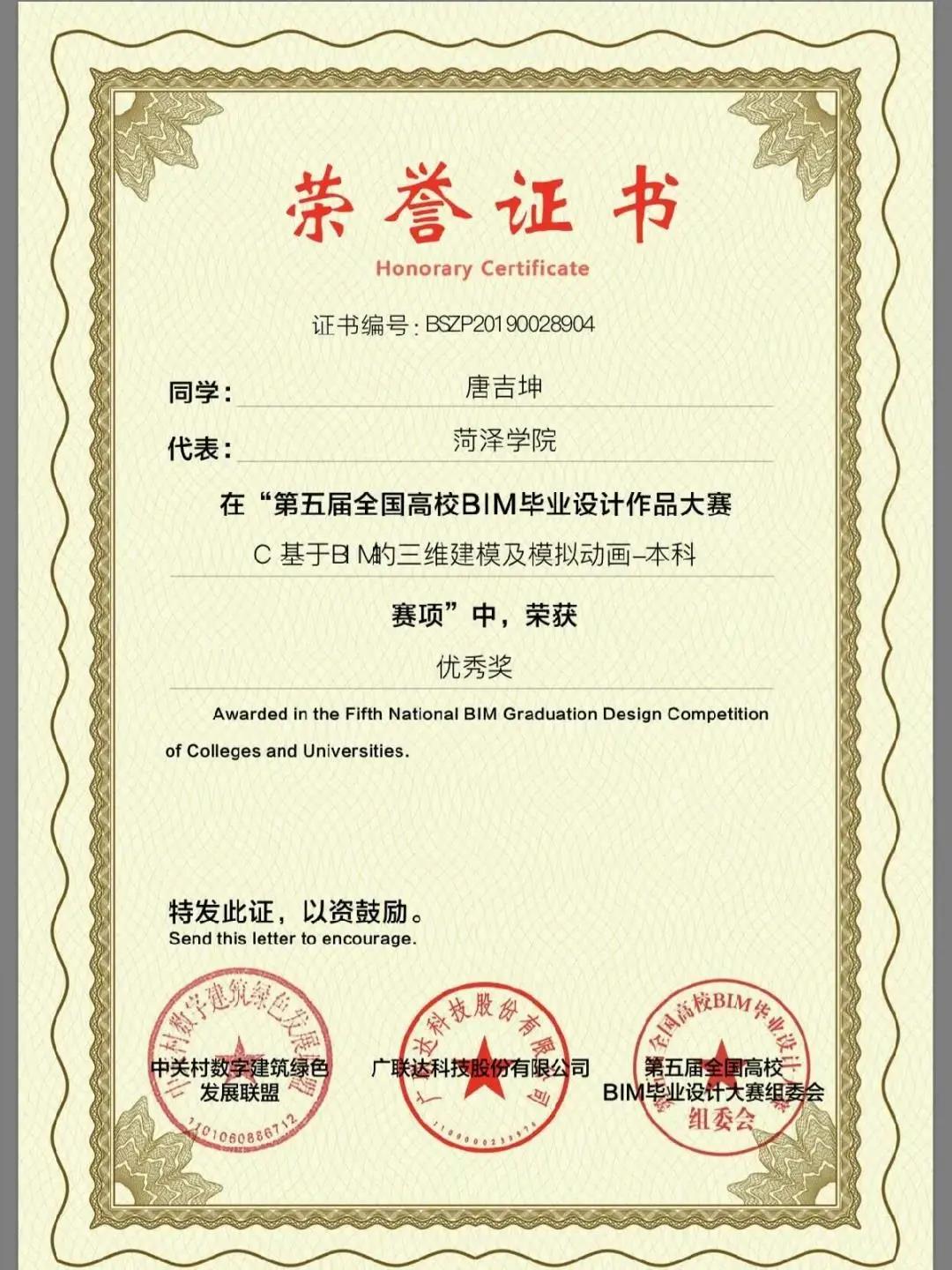 随着信息技术的日益更新,建筑专业的工作环境发生了极大的变化。在BIM技术下,工作人员可通过计算机完成规划、设计、施工、运维的全部工作流程。为提高学生专业技能,特别开设了BIM相关课程,并与山东骏文信息科技有限公司进行过深入合作。并且专业定期邀请经验丰富的工程技术人员和专家学者开展专业技能培训和学术讲座。近3年,学生参加全国及山东省各类BIM及相关比赛,共获得团体及个人一等奖2项、二等奖7项、三等奖15项。