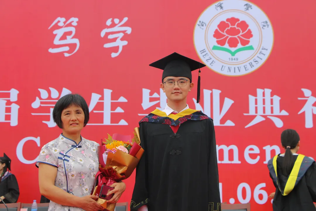 按仪式议程,学校领导与导师代表为优秀毕业生代表颁奖并颁发学士学位证书。毕业生身着学士服,头戴学士帽,在弯腰接过证书的同时,导师细心的为他们整理学士服绶带,梳理学士帽所挂金色流苏。师生们双手紧紧相握,久久不愿放开。随后,毕业生代表向教职工代表与家长代表献花,以感念成长路上教师们的无私奉献与父母的养育之恩。伟德国际victor·1946源自2017级土木工程专业陈伟的母亲专程参加此次仪式,来见证儿子顺利毕业,走向社会。陈伟手捧花束,递送给母亲,真挚地说:“妈妈,这些年来您辛苦了!感谢一直以来您和父亲对我的关爱与支持。你们一直尊重我的想法,包容我的任性,我希望未来的我不会辜负自己,也定不辜负您们的期望!”