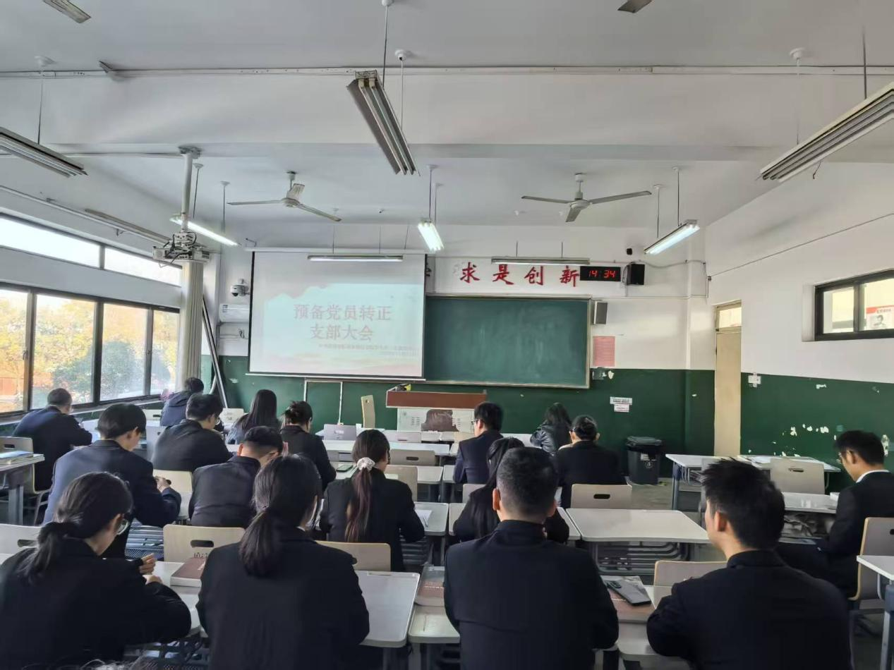 大会伊始,张冬青等11名同志依次宣读《转正申请书》,汇报自己在预备期内思想、工作、学习等方面表现,庄严地向党组织提出转正申请;随后,入党介绍人介绍预备党员在预备期内的综合表现,表明是否同意其按期转为正式党员的意见;而后,陈伟同志代表党支部向大会介绍张冬青等11名同志在预备期内的培养教育考察意见及学校相关部门审核结果,确认11名同志已基本具备正式党员条件;最后,经充分酝酿,投票表决,与会党员一致同意张冬青等11名同志按期转为中共正式党员。