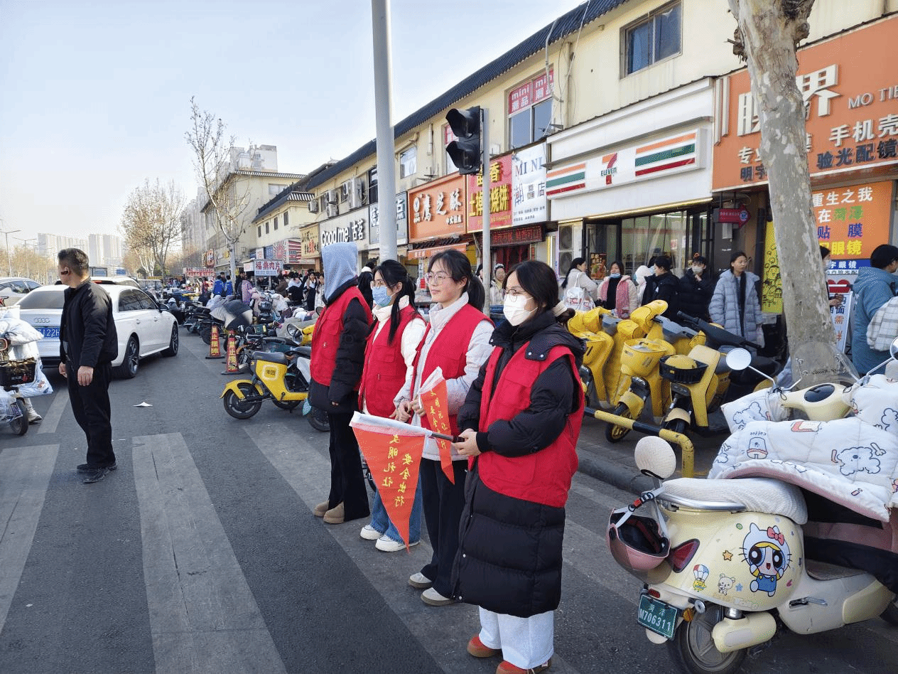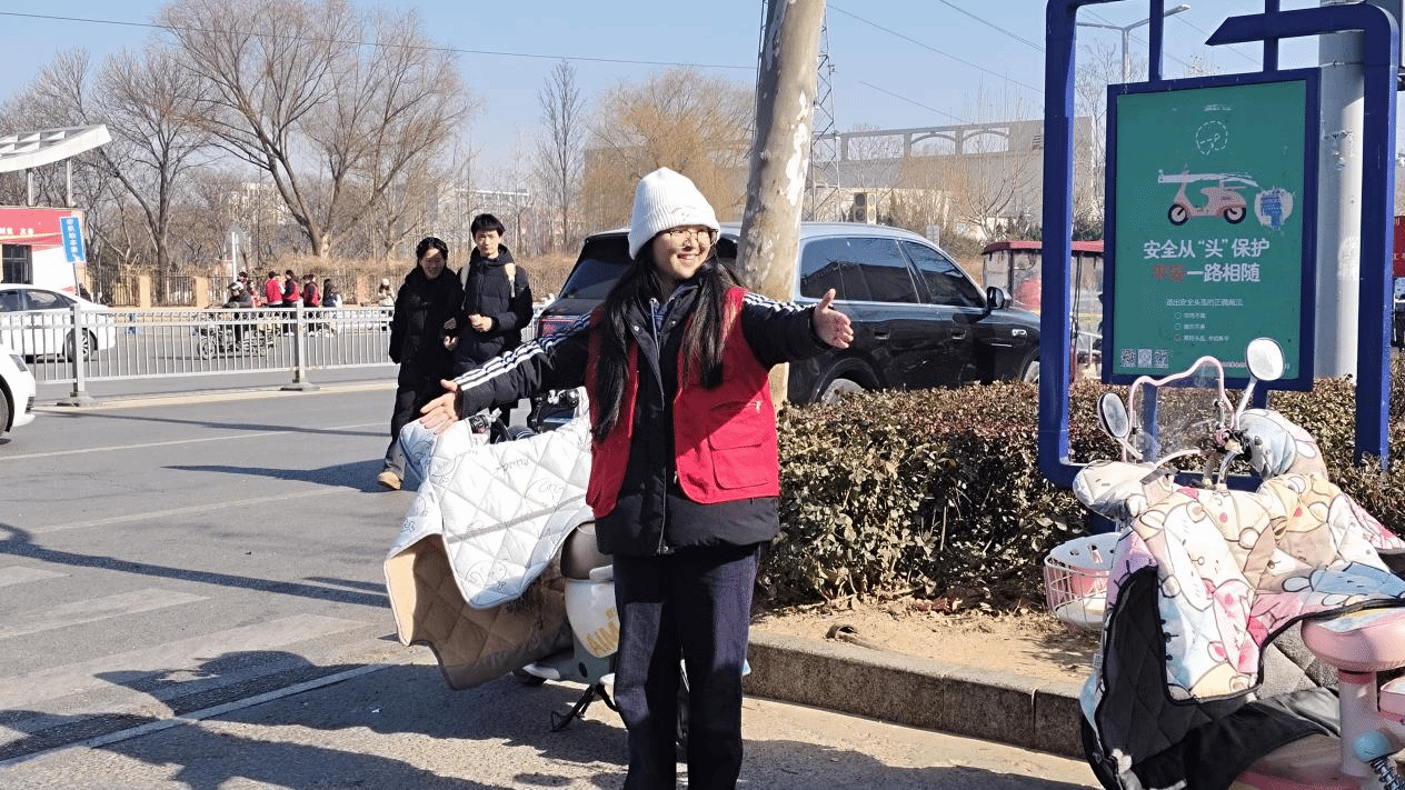 针对大学路非机动车数量激增带来的“停车难、行路难”及安全隐患问题,学生党员志愿者们组建了“文明交通志愿服务队”,在寒风中筑起了一道亮丽的风景线。尽管气温骤降、寒风刺骨,但这丝毫没有减退志愿者们的服务热情。在人流熙攘的路口,他们一遍遍引导车辆有序通行,一双双手将杂乱的车辆摆放整齐,一句句温馨的提示守护着师生平安。从“交通疏导员”到“文明劝导员”,志愿者们用脚步丈量责任,用热情传递温暖,有效缓解了交通压力。参与活动的党员同学表示,在寒风中坚守岗位,不仅是对身体素质的考验,更是对党性修养的洗礼,深刻体会到了“为人民服务”的真谛。