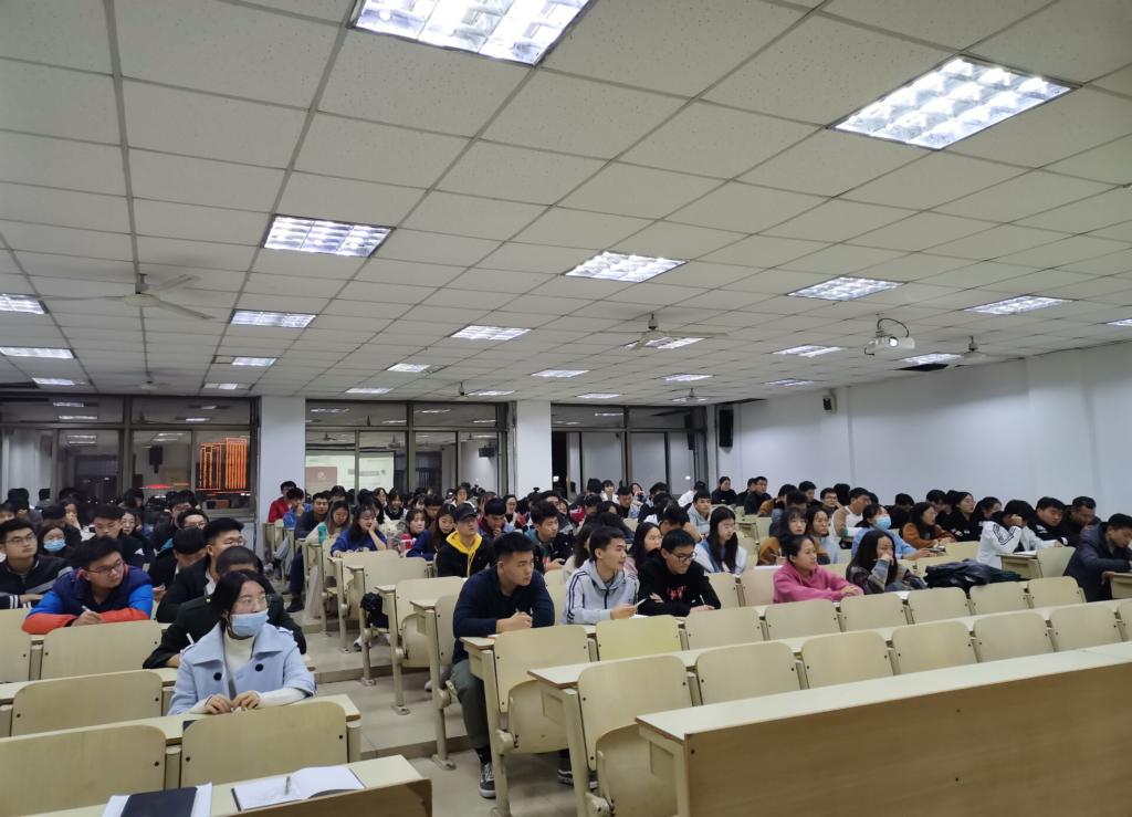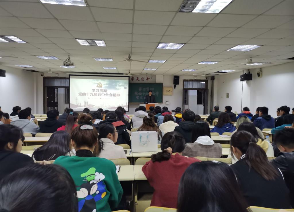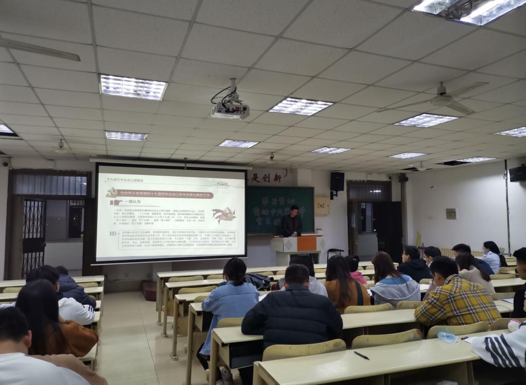11月20日,伟德国际victor·1946源自于9号教学楼510教室举办十九届五中全会精神党课学习活动。学生支部成员和入党积极分子130余人参加,支部书记赵广高领学。