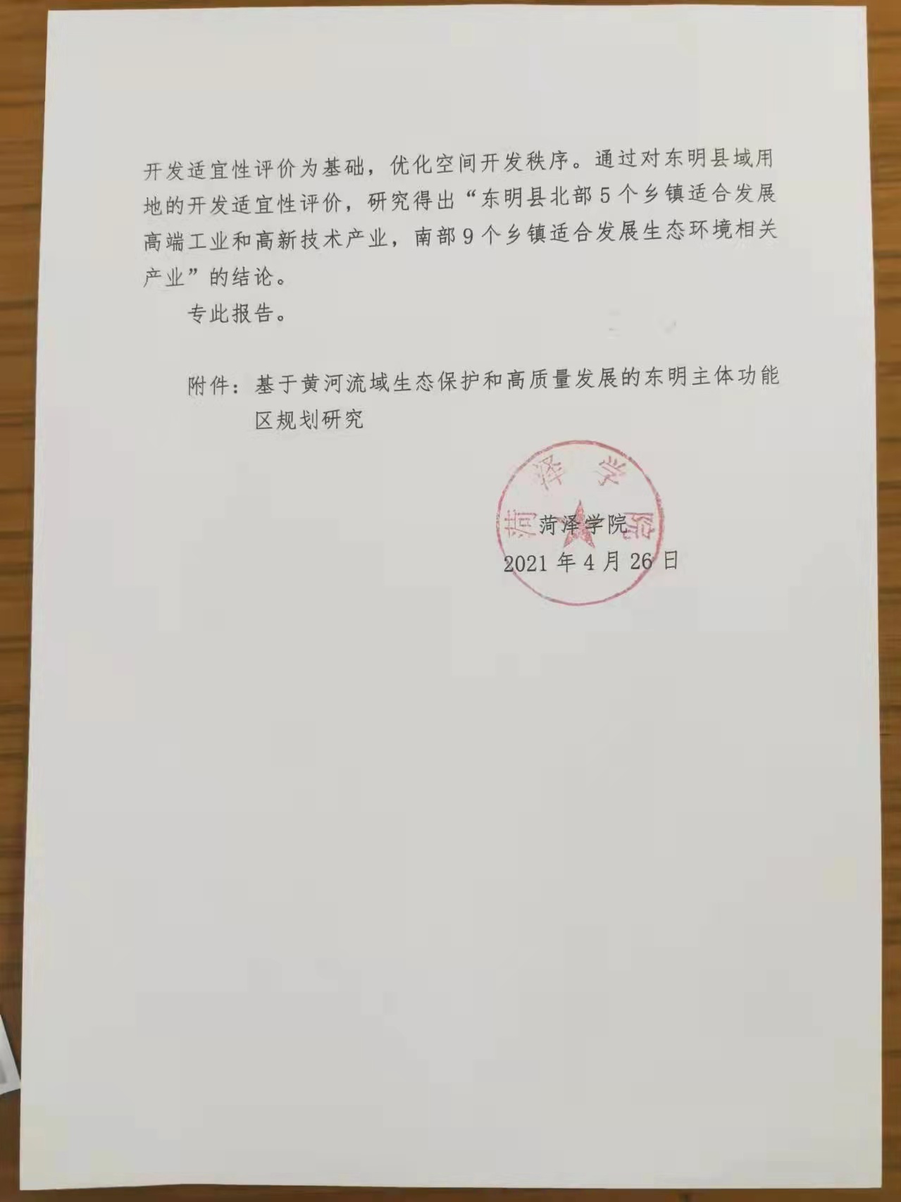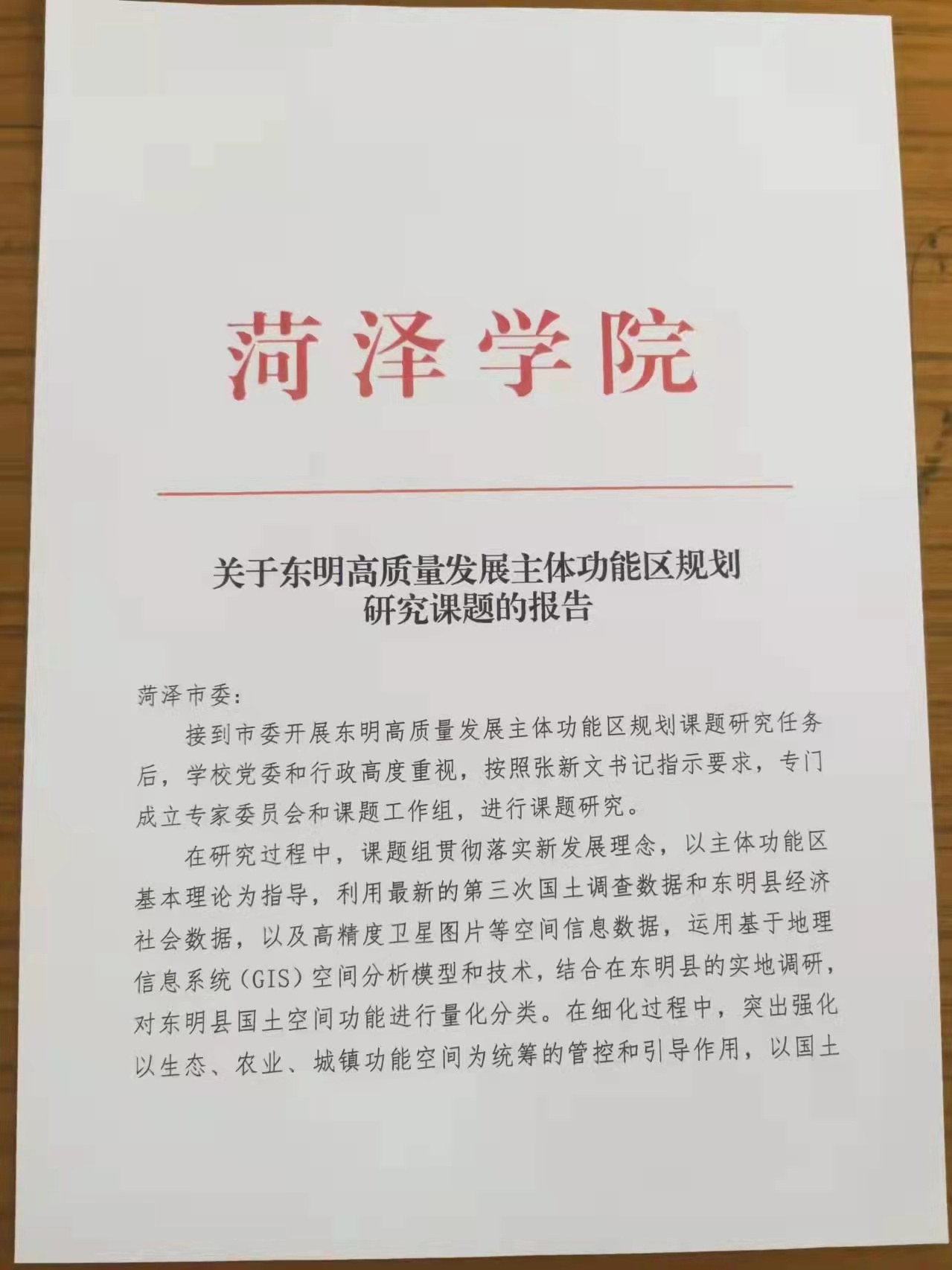 刘杰院长等参与《关于东明高质量发展主体功能区规划研究课题报告》获领导肯定