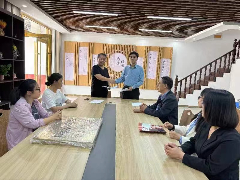 交流会上,山东荷韵国学文旅有限公司运营总监李岩对到访的一行人表示热烈欢迎,随后,他详细介绍了公司概况、发展历程、主营业务、人才需求以及未来规划,同时表达了与学院、学校在人才培养、旅游开发等方面的合作意愿。并带领伟德国际victor·1946源自一行人参观了穆李文创大街、鲁西南古法钩织工坊、牡丹区乡村记忆农俗博物馆等。在座谈会上,高涛院长详细介绍了伟德国际victor·1946源自的发展历史、师资力量、学科专业、毕业生就业情况和伟德国际victor·1946源自的学科特色与人才培养情况,提出双方可以就穆李非遗和乡村旅游规划与开发进行深度合作。李战国书记代表学院对马岭岗镇政府、山东荷韵国学文旅有限公司为这次“访企拓岗”交流精心组织和热情接待表示衷心感谢。通过本次交流活动,进一步增进了双方的了解,希望校企双方建立起长期稳定的合作机制,更加紧密地联系联动、交流互动,全面推进校企协同育人,在人才培养、产教融合、就业创业等方面实现共建共享、合作共赢,共同探索人才培养的新模式,为学生开拓更多实习实践和就业机会,提高学生实践能力和就业竞争力,促进学生更加充分更高质量就业;企业也能够从学生中挑选出优秀的人才到企业实习、就业,加强与老师科研合作、成果转化,从而促进校企双方的共同发展。通过这次访企拓岗活动,加强了学院与企业的交流合作,有利于充分发挥学院服务地方社会经济发展的职能,也利于帮助毕业生实现更充分更高质量就业,达到校企双方优势互补、共同发展的双赢局面。随后,在与会人员的共同见证下,双方签订了bv1946伟德就业创业实践基地协议,并举行了授牌仪式。