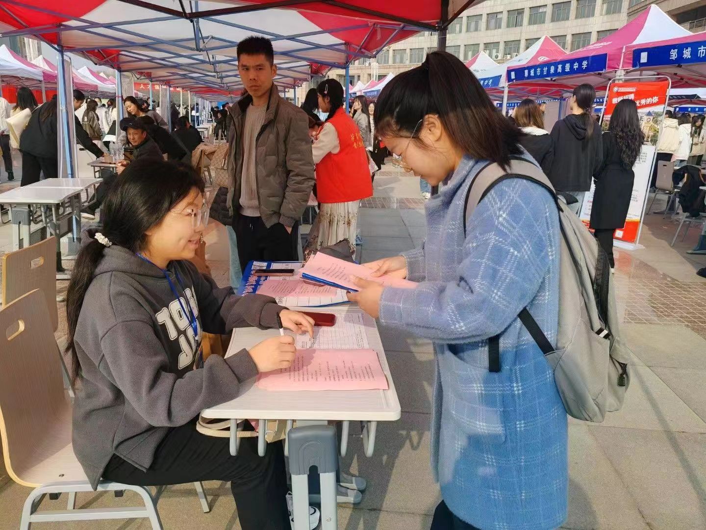 就业工作不仅关乎毕业生的个人发展、家庭幸福,更关乎学校办学质量和社会和谐稳定,做好毕业生就业工作责任重大,使命光荣。为全面贯彻落实党中央、国务院“多渠道开发就业岗位”、“简化优化求职就业手续”“着力加强青年就业帮扶”决策部署,更好地解决我校毕业生就业的问题,3月16日, “‘菏’你一起,职享‘位’来--师范类高校毕业生就业双选会bv1946伟德专场”于综合楼前广场举行,伟德国际victor·1946源自党委副书记刁永鸽以及全体辅导员随本院求职学生一块来到现场。