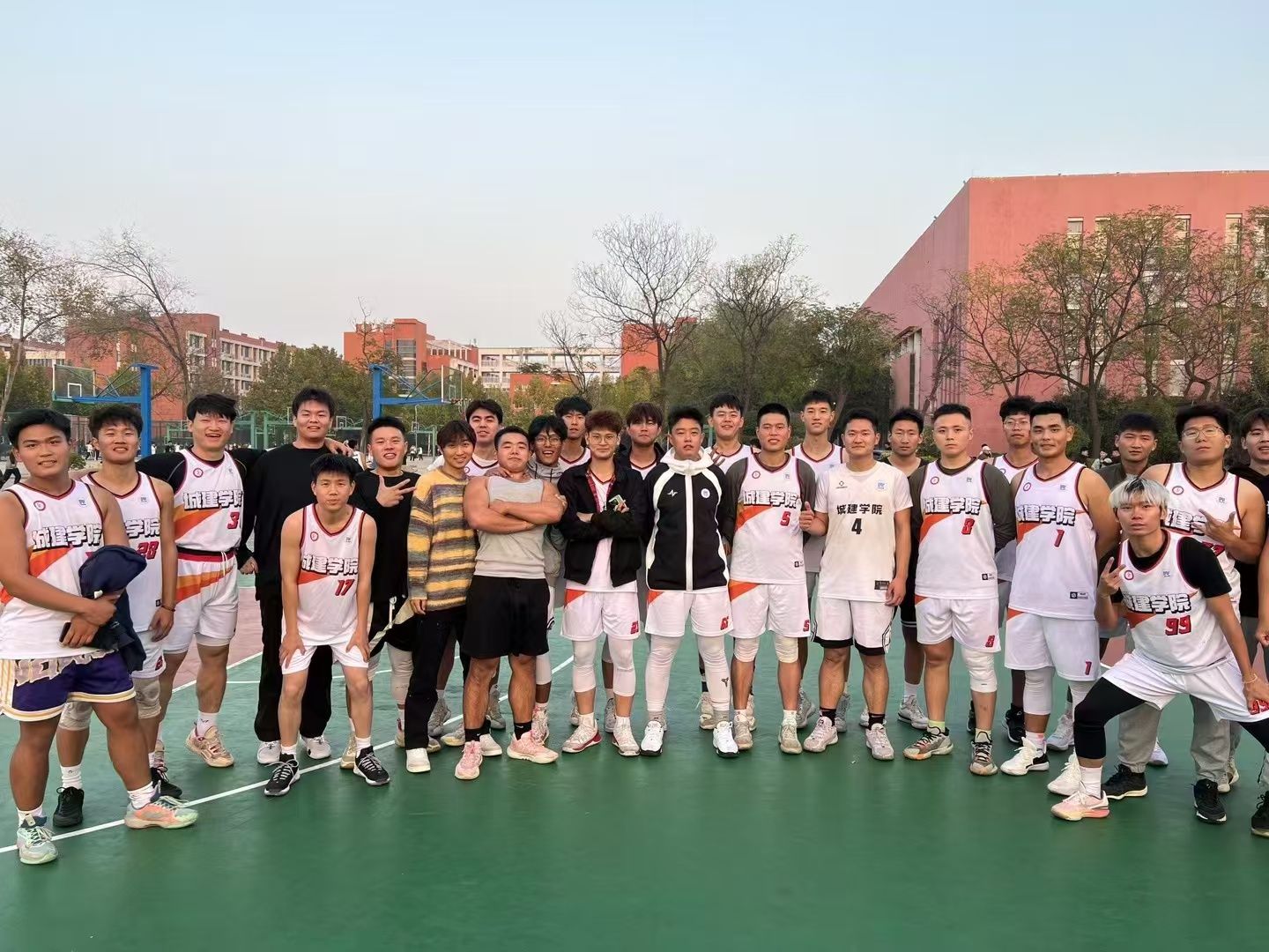 在我院篮球队与政法学院篮球队的比赛中,随着一声哨响,一场精彩的篮球赛拉开帷幕,双方队员迅速进入状态。队员们个个精神饱满,凭借平日里刻苦训练培养出的默契配合以及出色的个人技术,篮球场上跳跃着青春的光芒。运球、转身、防守、上篮等每一个动作都娴熟且果断,每一次触球都是对胜利的渴望。他们彼此信任,共同进退,用实际行动诠释团队精神,以奋力拼搏、不畏艰难的精神彰显城建学子的青春风貌。