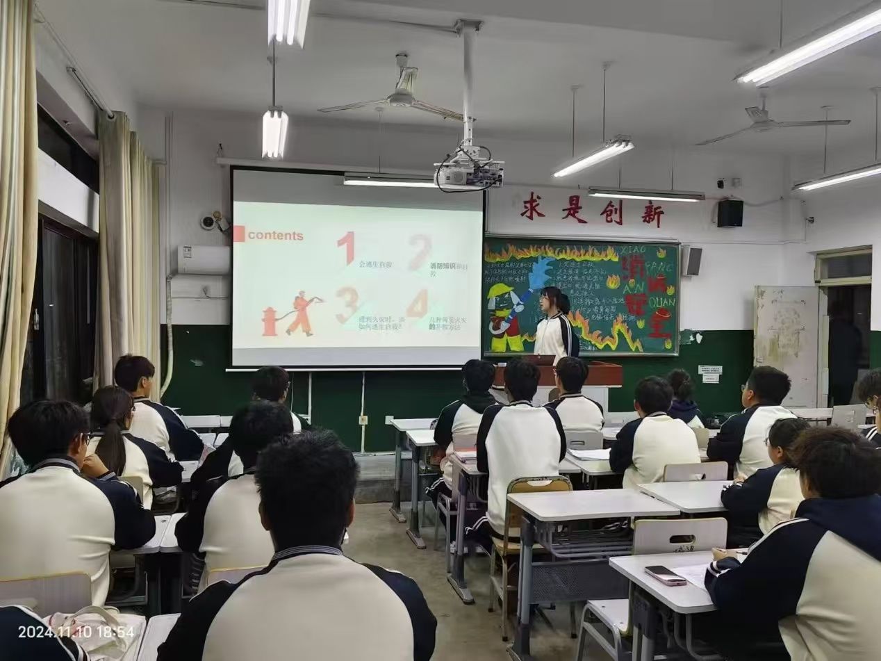 会议中,高靖涵首先强调了消防安全的重要性,通过视频和案例的方式向同学们展示火灾的危害,希望同学们提高警惕,对消防安全更加重视。随后,她向同学们科普了消防安全知识,讲解了火灾预防的基本概念,介绍了多种灭火器的使用方法,并且分享了火灾的逃生指南,希望通过此次科普可以让同学们增强消防安全意识,掌握消防知识,保护自己的生命和财产安全。最后,高靖涵提醒各位同学要严格遵守宿舍安全规定,杜绝一切可能引发火灾的不良行为,共同为校园安全筑起一道坚实的防线。