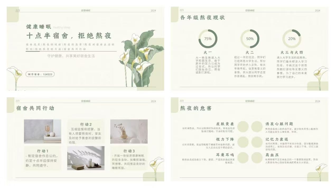 通过征文活动,科普了健康作息的重要性,有力推动了我院学子养成良好的生活作息,营造了积极向上的宿舍氛围和良好学习环境。