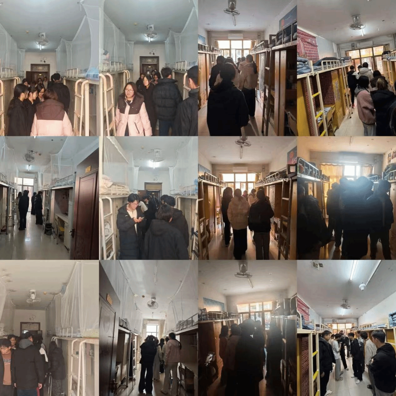 活动期间,首先由宿管部工作人员在集合点引导参与同学有序签到并简要说明参观注意事项及流程安排;随后在宿管部带领下依次进入各样板间,由退伍兵现场讲解宿舍物品收纳技巧、空间规划方法、卫生清洁标准及宿舍文化建设亮点,同时预留互动交流时间,方便同学们针对疑问进行咨询;参观结束后,组织全体参与同学在指定场地集合,由宿管部负责人对本次活动进行总结,重申宿舍管理规范及文明住宿要求,并鼓励同学们积极借鉴样板间经验优化自身宿舍环境,最后宣布活动结束,引导同学们有序离场。