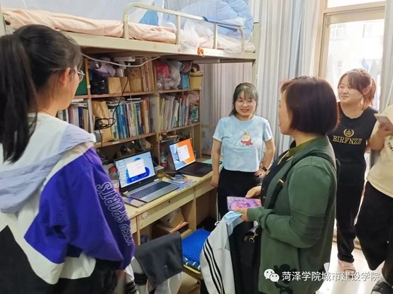 本次大赛主要采用线上竞赛,线下参观的方式进行展开,经过线上各宿舍激烈角逐,大赛最终评定出两个优秀寝室。25日下午,在李伟老师的带领下,相关学生部门及工作人员齐聚五号楼,共同参观获奖寝室。寝室内部干净整洁,由寝室成员对寝室概念进行阐述:“我们寝室主打的概念是‘温馨’,寝室是我们每个人的一个小家,只有让这个小家充满温暖,我们的校园生活才会过得更加丰富多彩!”李伟分别同两寝室成员进行交流,对寝室存在的一些小问题进行了指出,并提出改正意见。