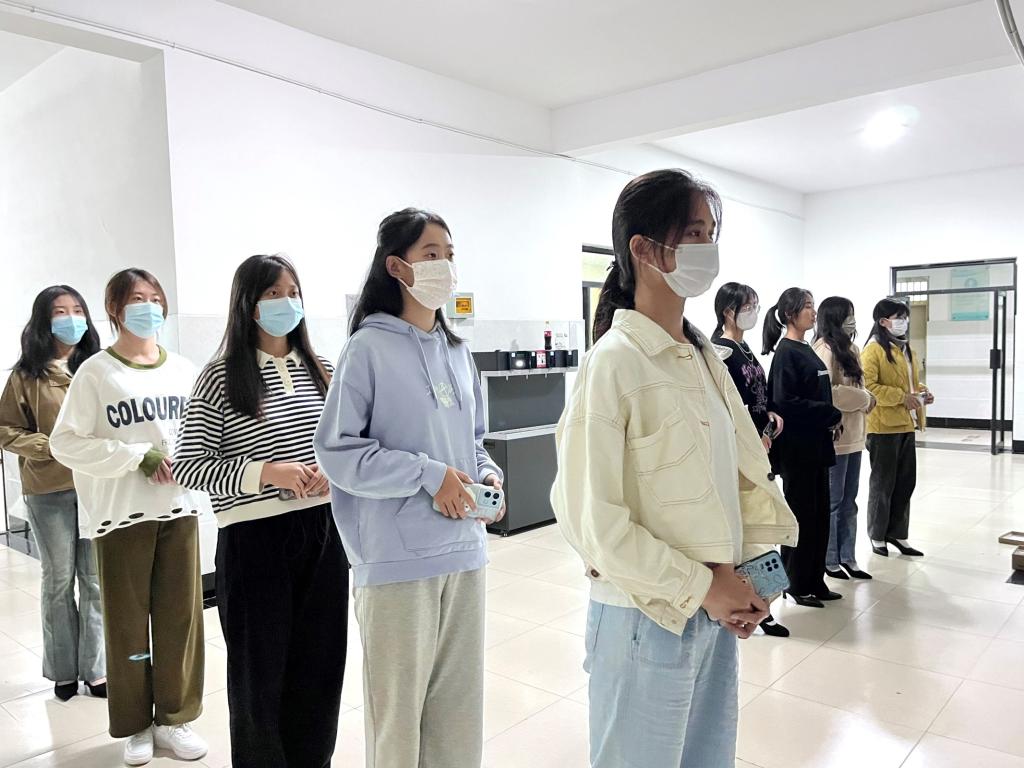 训练开始,旗袍队成员首先分为两组进行贴墙站热身训练,为正式训练拥有一个良好的仪态做准备。随后,谢玲格为旗袍队成员指导队形变换,并对旗袍队成员的仪态、动作、步伐进行耐心的讲解与调整。成员根据讲解进行练习,不断调整自己的动作,努力达到最高标准,为完美队形的形成打下坚实的基础。最后,旗袍队成员结合学习内容进行连续训练,伴随着音乐的节拍,迈着优雅的步伐,婀娜多姿的演绎着旗袍故事。