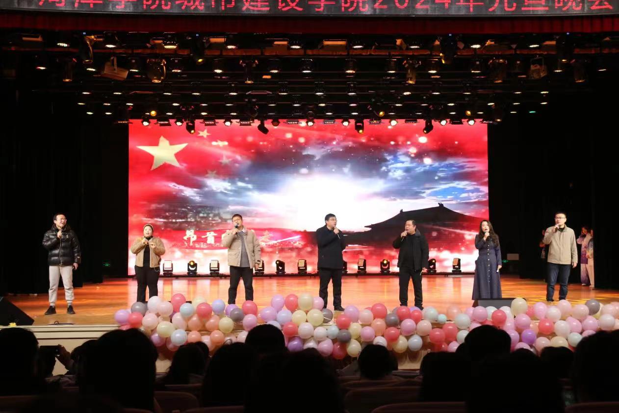 晚会伊始,刁永鸽代表伟德国际victor·1946源自党委向全体师生致新年贺词,向辛勤工作、敬业奉献的全体教职员工,向朝气蓬勃、奋发向上的同学们,致以新年最美好的祝愿。紧接着,“凤凰传奇”歌曲串烧点燃了晚会的激情,耳熟能详的音乐串起大家记忆中的乐章。皎皎兮似轻云之蔽月,飘飘兮若回风之流雪,《江南忆秦淮》旗袍秀更是惊艳四座,落落大方的旗袍配上绝美的江南烟雨,使人身临其境。粤语与音符,力量与激情,一首《海阔天空》唱响了追求梦想的勇气与坚定,更是激励我们勇敢地面对生活中的困难与挑战。接踵而至的歌曲《传奇》、《偏爱》、《指纹》、《爱如潮水》……以其动人的旋律和深情的歌词,向大家传达了对爱情和生命的思考。万里江山书锦绣,千秋岁月绘春辉,院长卜万奎带队一曲《中国人》共同演绎着华夏气魄。钢琴曲《水边的阿狄丽娜》让同学们声临其境,优雅地琴声仿佛将现场变成了高雅的剧场。《佳节有时》汉服走秀将古色古香的人物形象带到眼前。丰富多样的舞蹈,小品为我们带来了一场场视觉盛宴,伟德国际victor·1946源自体育健儿带来的《奇迹再现》更是彰显了队员们扎实的基本功。压轴出场的是师生携手倾情演唱《桃花朵朵开,相亲相爱》台上台下载歌载舞,喝彩此起彼伏的,相亲相爱城建一家亲,为晚会画上了圆满句号。