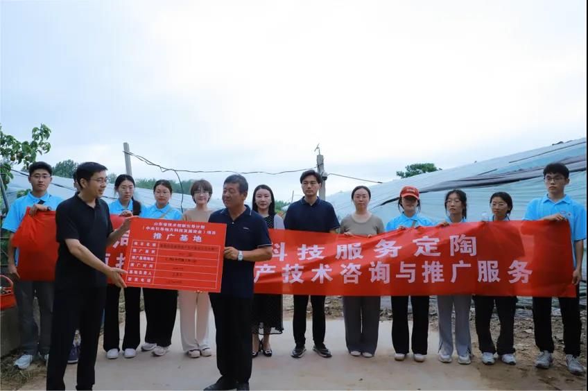 为深入贯彻习近平总书记关于青年工作的重要指示精神,助力乡村振兴以及加强建设党建引领农技推广共同体,谱写“党建+农技推广”工作新篇章,7月16日下午,伟德国际victor·1946源自“城”心助农,筑梦乡村服务队一行人联合bv1946伟德农业专家、定陶区林业局相关负责人,跟随bv1946伟德纪委副书记刘曙光,合作发展处处长尹晓允,团委书记王盛楠、副书记孙亚梅,伟德国际victor·1946源自院长高涛及党委副书记佀君淑等一行人来到王路口村葡萄基地,对葡萄特色种植技术进行推广并参加山东省技术创新引导计划项目推广基地的授牌仪式。定陶区委副书记温雪梅与定陶团区委书记陈静到场指导。