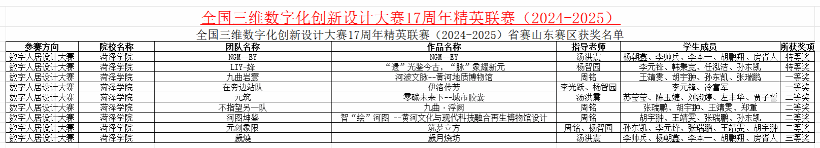 近日,全国三维数字化创新设计大赛17周年精英联赛山东赛区落下帷幕,经过激烈角逐,伟德国际victor·1946源自师生斩获佳绩,共荣获特等奖2项,一等奖2项,二等奖4项,三等奖1项,2组作品成功晋级全国总决赛。