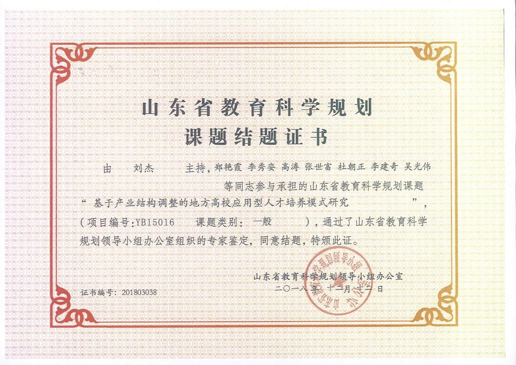 我院获批并结项“山东省教育科学规划课题”《基于产业结构调整的地方高校应用型人才培养模式研究》 (项目编号:YB15016)