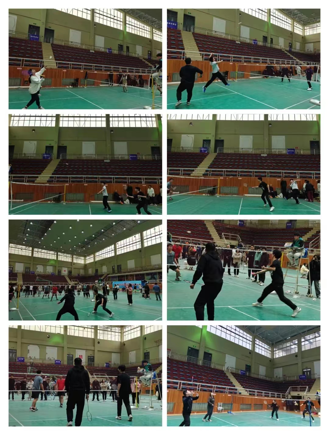 随着第一个发球轻盈飞出,比赛正式开始,赛场瞬间活力四射,选手们展现出最好的状态,开启角逐之旅。“友谊第一,比赛第二”,师生们默契的配合和严谨的攻防迅速将比赛推向高潮。从架拍迎球、抽球到蓄力起跳、杀球,选手们每一次协调连贯的接杀,不仅是每个选手们的坚持,更是体内积蓄的青春力量的迸发。每一次挥拍都充满力量,每一次跳跃都展现出速度与激情,蓄力发球、大力扣球、网前扑杀等各路球技被展现的淋漓尽致,攻防转换,瞬息万变,选手们尽情挥洒汗水和热情,为了集体荣誉奋力拼搏,诠释着体育精神的真谛,以饱满的热情和精彩的球技上演了一场激烈的竞技盛宴。赛场上已不是输赢决定的热情,更是对羽毛球运动的热爱与坚守。